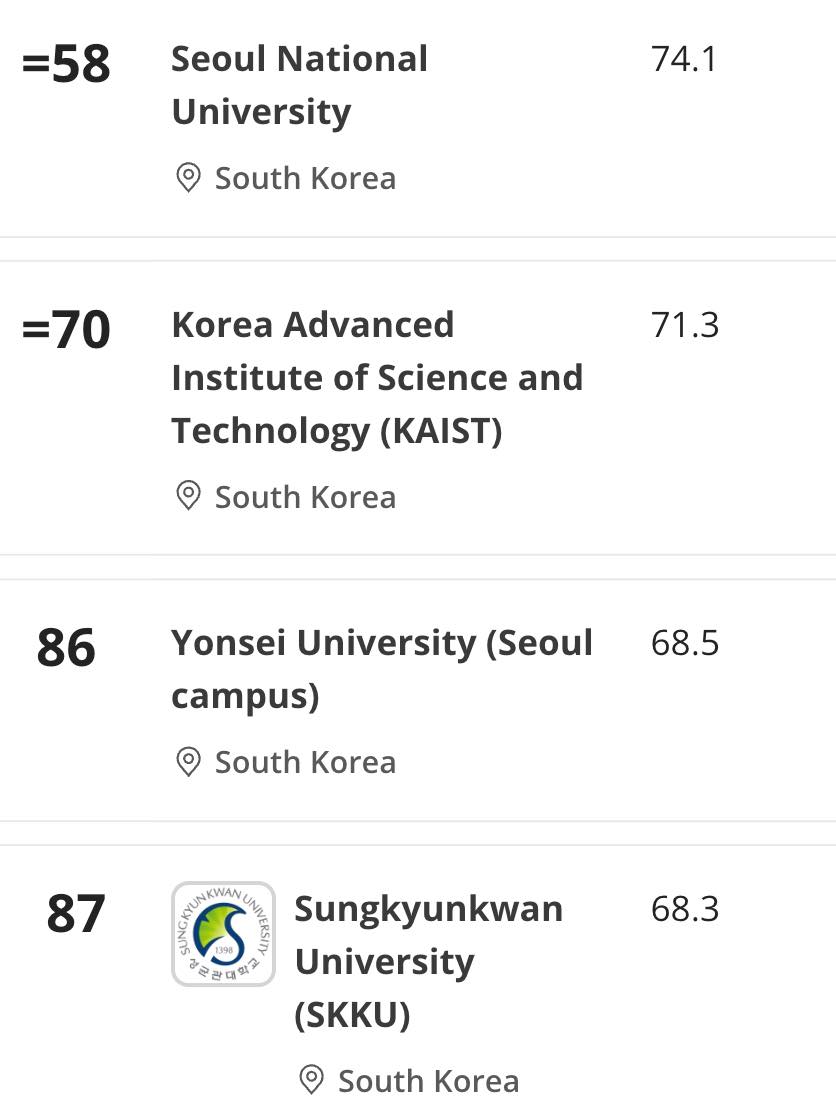 이번 순위에서 한국 대학들의 약진은 매우 자랑스러운 소식입니다.