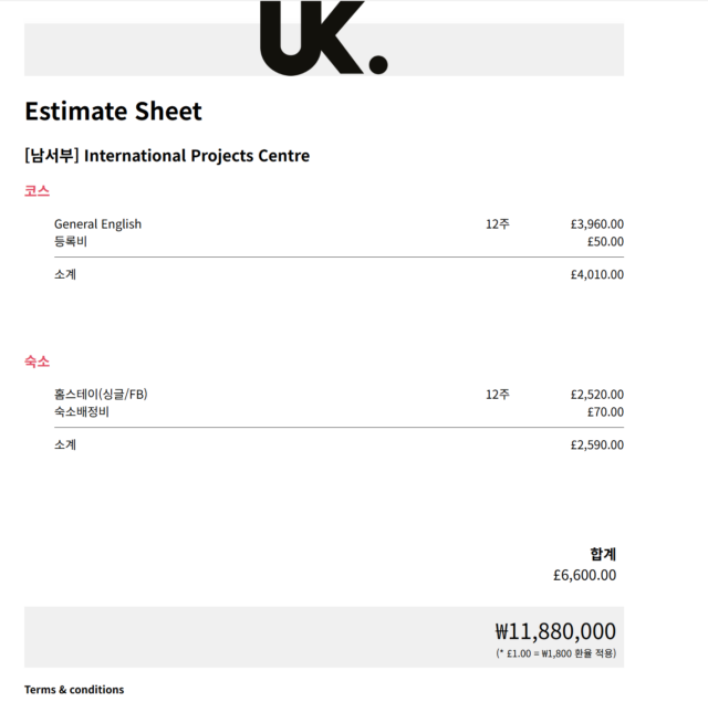 정확한 비용과 더 자세한 정보가 궁금하시다면, 영국유학닷컴으로 문의해주세요. 개인별 상황에 맞는 맞춤 견적과 상세한 정보를 제공해드릴게요!