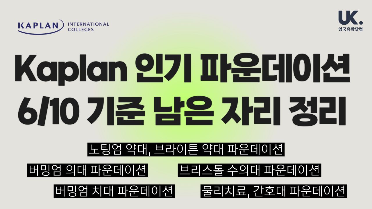 카플란 소속 영국 대학교 의대 · 약대 · 수의대 파운데이션 지원 현황 안내 - 남은 자리 정리했어요!