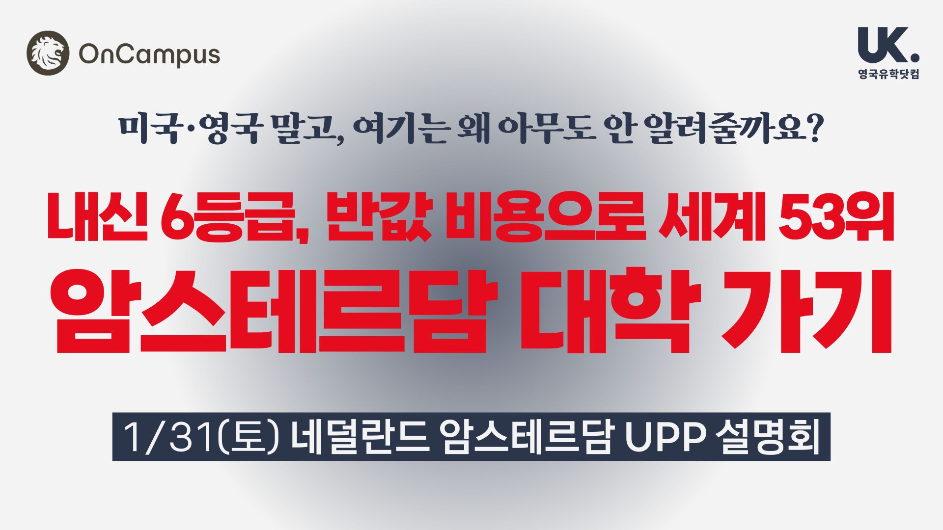 [설명회] 내신 6등급, 반값 비용으로 세계 53위 대학 가기 🇳🇱 암스테르담 대학 UPP 설명회
