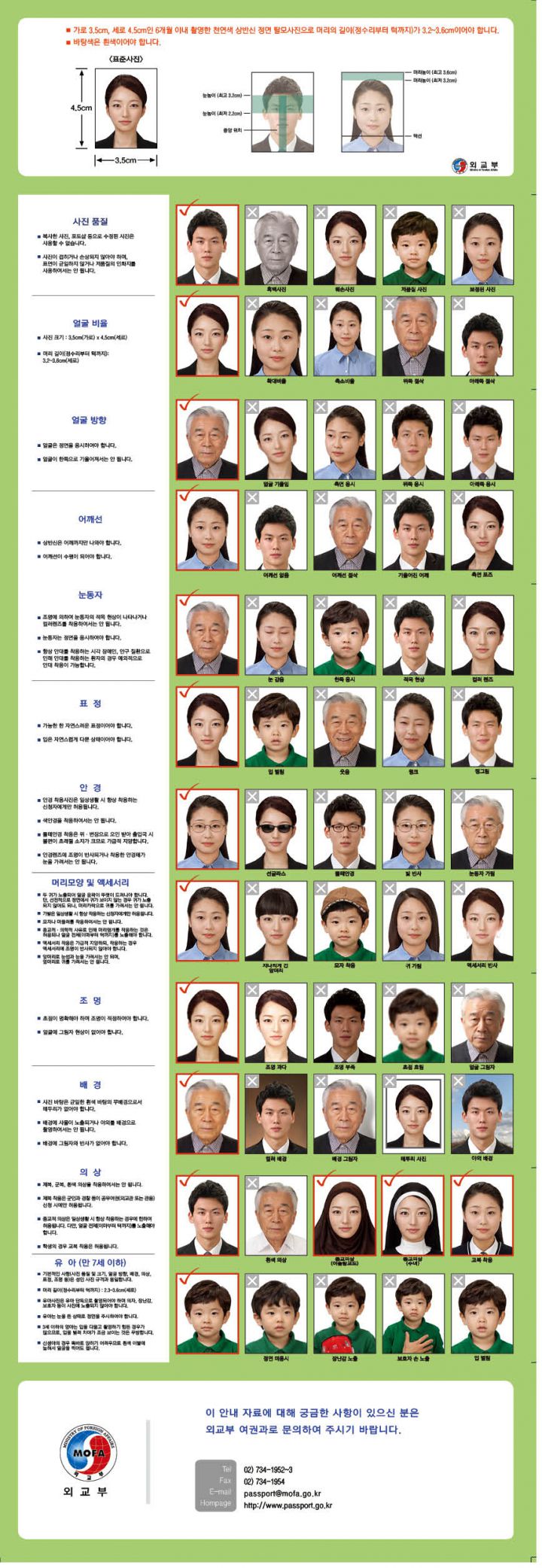 2014년부터 전자여권용 사진 속의 머리 길이(정수리부터 턱까지의 길이)가 3.2cm~3.6cm이어야 합니다. 여권을 새로 만들거나, 갱신하시는 분들의 경우 꼭 이점 양지하셔서…