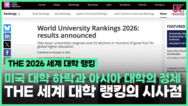THE 2026 세계 대학 순위 분석: 격변의 시대, 영국 유학의 새로운 기회 안녕하세요, 영국유학닷컴 대표 장지성입니다. 매년 이맘때 발표되는 THE(Times…